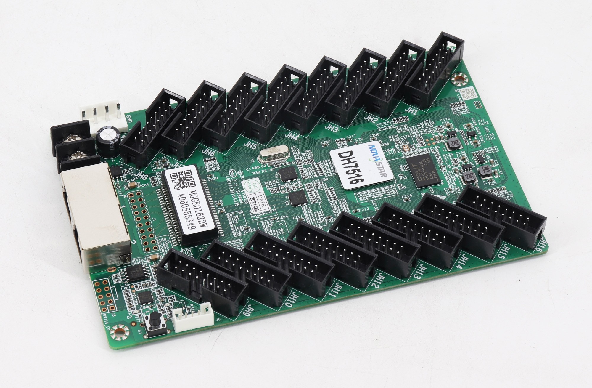 -5%Novastar DH7508 DH7512 DH7516 Empfangskarte für LED -Bildschirm ist eine universelle Empfängerkarte von Novalct, mit einer maximalen Belastung von 512 × 384 Pixel auf einer einzelnen Karte (Novalct muss v5.3.0 und höher sein).